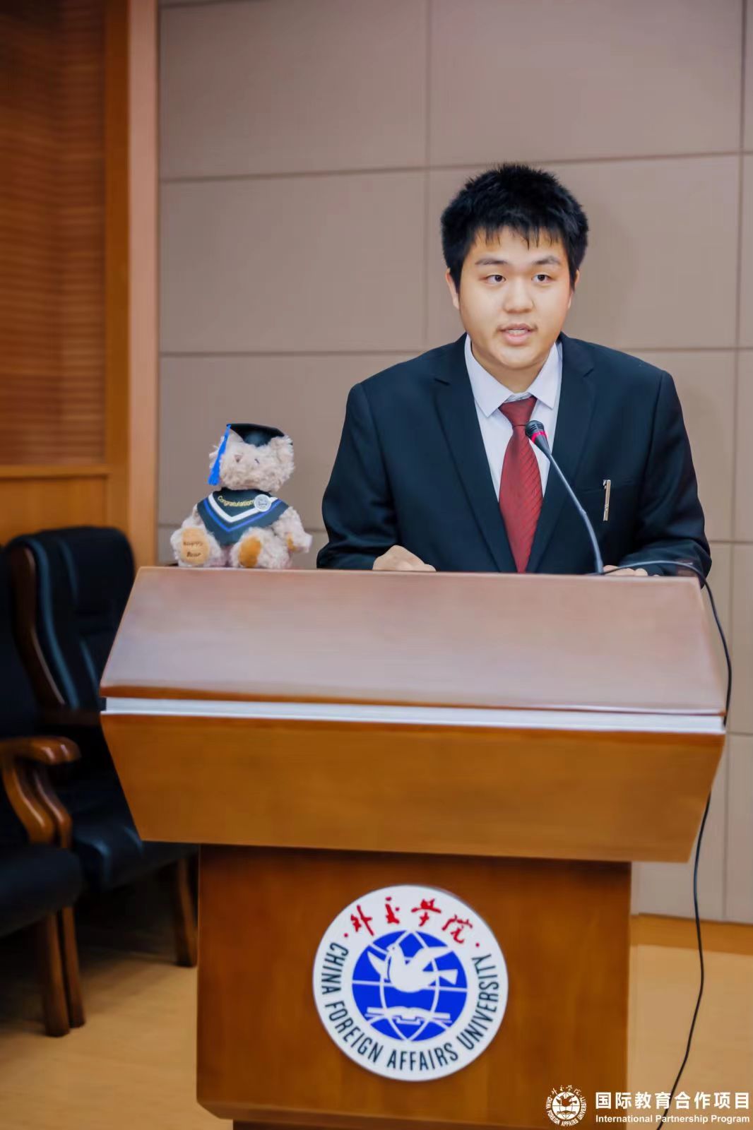 在外交学院的学习时光转瞬即逝,这段宝贵的经历不仅充实了我的知识,更让我深刻体会到了老师们的无私奉献和细致认真的态度。作为班长,我有幸见证了同学们在学习上的努力与进步,大家共同奋斗、互相激励的画面历历在目。我经常提醒同学们珍惜时间,努力向前,因为我们心中都有一个共同的目标:在世界各地展开新的征程和美好的未来!