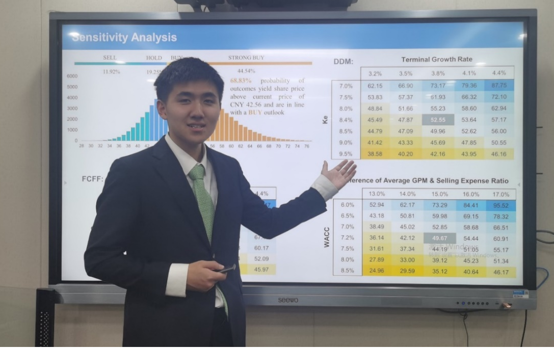 在比赛的准备过程中,参赛同学投入了大量的精力,毛羽丰老师和李涛老师进行了全程参与指导学生开展投资研究实践活动。业界导师郭志远先生多次对书面报告、演示文稿及现场展示提出宝贵意见,国际经济学院欧明刚老师、张文佳老师、朱英伦老师也在备赛过程中为同学们答疑解惑。诚挚感谢指导教师团队和顾问团队所付出的辛苦努力!