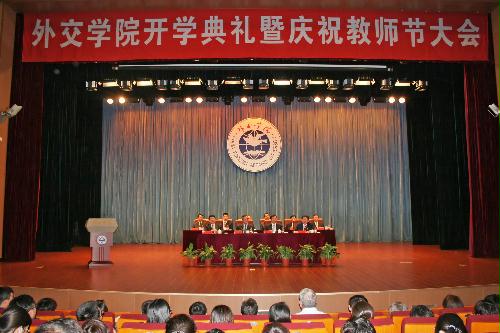 2014年9月2日上午,外交学院在沙河新校区礼堂举行2014-2015学年开学典礼暨庆祝教师节大会。外交部王毅部长出席大会并发表重要讲话。学院全体院领导、中层干部、部分双代会代表、新入职教师和全体新生700余人参加了开学典礼。应邀出席会议的还有:外交部部长助理钱洪山、办公厅主任李惠来、干部司司长吕凡、行政司司长孙霖江、财务司司长李超、机关党委常务副书记邓波清、服务中心主任曲来璞。外交学院党委副书记郑启荣主持大会。