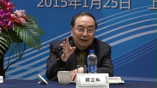 十届全国人大常委会副委员长蒋正华在致辞中祝贺外交学院国家软实力研究中心成立两周年,认为上海正在努力打造"国际经济中心、国际贸易中心、国际金融中心、国际航运中心",政府部门要重视发展和运用软实力,重视与国际和国家级智库的交流合作。