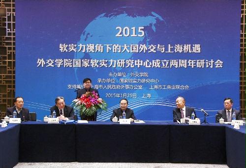 2015年1月25日,"软实力视角下的大国外交与上海机遇——外交学院国家软实力研究中心成立两周年研讨会"在沪举行。