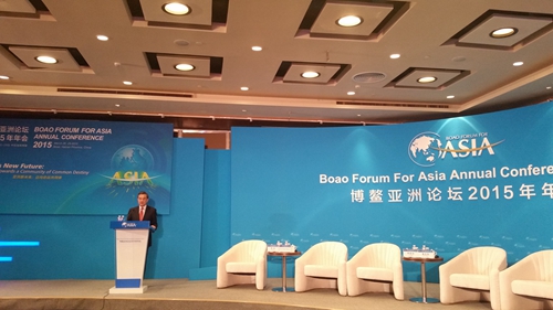 2015年3月28日,博鳌亚洲论坛2015年会期间,我院亚洲研究所承办的 "东盟共同体:一体化的新起点"分论坛在博鳌国际会议中心一层东屿宴会大厅成功举行。马来西亚前总理巴达维、中国外交部部长王毅出席分论坛并发表了主旨演讲。我院院长秦亚青教授与柬埔寨合作与和平研究院主席、柬埔寨前副总理兼外长诺罗敦·西里武亲王、马来西亚战略与国际问题研究所所长Tan Sri Rastam Mohd Isa以及中国进出口银行前董事长李若谷、国家开发银行运营总监王革凡五位嘉宾就东盟共同体建设、中国与东盟关系等议题进行了探讨。分论坛由中央电视台杨锐主持,外交学院副院长江瑞平教授率亚洲研究所相关人员参与了论坛相关活动。