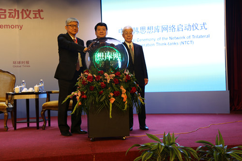 随后,中国外交学院院长秦亚青、日本东亚共同体评议会议长石垣泰司和韩国国立外交院院长尹德敏共同启动了"中日韩思想库网络"(Network of Trilateral Cooperation Think-tanks)。该网络是由中国政府倡议、经由中日韩三国外长会正式通过后成立的。中国外交学院、日本国际关系论坛和韩国国立外交院已分别被三国政府指定为智库网络的国家协调单位。作为三国智库交流的重要机制化平台,"中日韩思想库网络"将致力于加强三国智库间的对话与合作,共同研究三国合作的共同利益基础、优先领域、面临的机遇和挑战,为中日韩合作未来发展提供智力支持。