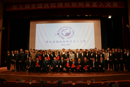 各高校代表队经过两天的激烈角逐,最终由南开大学代表队一举夺魁、荣获一等奖,外交学院、中央财经大学代表队获得二等奖,吉林大学、浙江大学和对外经济贸易大学代表队获得三等奖。空军工程大学首次参赛,但其精彩突出的表现为他们赢得了"最佳新闻团队"称号。本次大赛还设置了两项个人奖,空军工程大学的樊伟获得了个人"最佳新闻发布"奖,南开大学的朱萌、中国政法大学的晏尔凡、吉林大学的王一淼和外交学院的秦谦获得"优秀演讲家"称号。