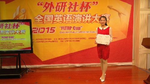 2015年"外研社杯"全国英语演讲大赛北京赛区复赛于11月1日在北京林业大学举行。本次大赛共有北京高校的54名优秀选手参加,经过残酷的淘汰赛和选拔赛后,我院英语系2015级学生张粲荣获一等奖。