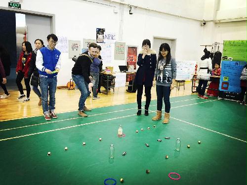 本次游园会的游戏由各个学生社团负责,娱乐为主、竞技为辅。"一个瓶子的独白"中参与者将愿望写下后放入心愿瓶中,同时取走其他人的心愿瓶,若有可能帮其实现愿望;"国学撷萃"悬挂在麻绳上的谜语使老师同学们体验了一把猜灯谜的乐趣;"疯狂大脑"的参与者们开动脑筋,用随机抽取的四个数字算出24点的结果;"新语心愿"为参与者们提供了一个表达新年愿望的平台;"跋山涉水"、"直冲云霄"、"点石成金"等通过特定道具让参与者在趣味游戏中进行比拼;此外还有套圈、你说我猜、看图猜词等经典游戏,师生们沉醉在欢乐的气氛中。