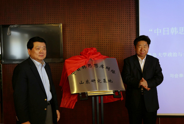 2016年4月8日,"中日韩思想库网络"山东研究基地揭牌仪式在青岛大学举行。外交学院院长秦亚青,青岛大学党委书记、校长范跃进出席仪式并为研究基地揭牌。青岛大学校长助理钱国旗主持仪式。