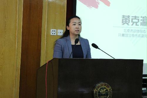 北京市政协常委、共青团北京市委副书记黄克瀛代表北京团市委讲话。黄书记指出,共青团致力于青年成长成才,积极团结社会各界引导青年人的成长与发展。提案大赛是凝聚多方力量的有效的渠道。黄克瀛对参加提案大赛的选手们提出了三点要求与期望:一是立实事求是之心。青年大学生应该走出高校象牙塔,将课堂所学与实践相结合;二是立服务群众之命。提案要反映人民群众的呼声,为人民群众谋求福祉;三是矢志报国之志。青年大学生要体会个人发展与国家进步的关系,在推动国家发展的同事磨砺自己,砥砺前行。