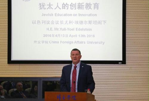 2016年4月13日,在全国人大外事委员会副主任委员王晓初的陪同下,以色列议会议长尤利·埃德尔斯坦(Yuli Edelstein)率团到访我院沙河新校区,并发表题为"犹太人的创新教育"的演讲。