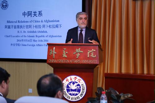 2016年5月16日,阿富汗首席执行官阿卜杜拉·阿卜杜拉博士(H. E. Dr. Abdullah Abdullah)率团到访我院沙河新校区,并发表题为"阿富汗国内现状与中阿关系"的演讲。