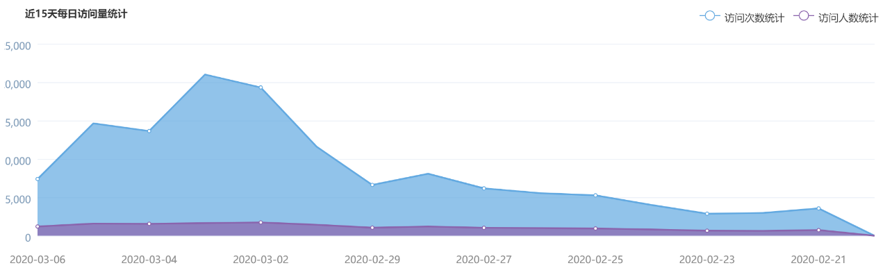 综合服务门户近15日的访问量3月2日正式开学,系统的访问量大幅度增加,说明师生在大量登录系统进行网络教学和学习。