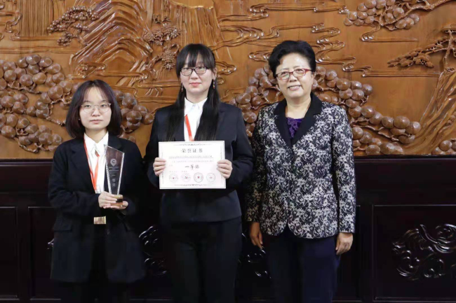 外交学院党委书记崔启明、北京市教工委常务副书记郑吉春、北京团市委书记李军会为获奖选手颁发二等奖