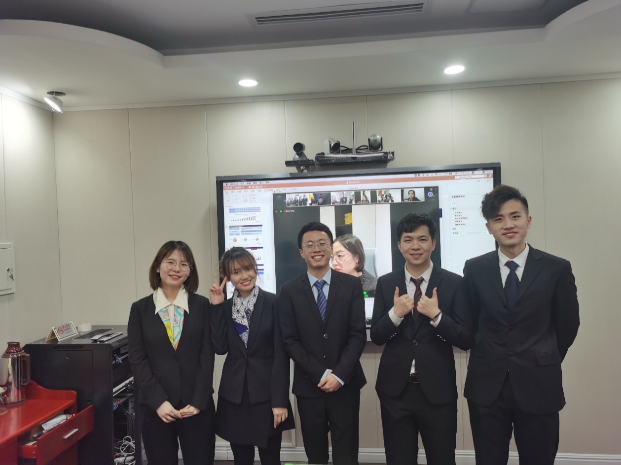 本次外交学院代表队由2020级金融专业硕士研究生陈庆祥、苗雪晴、陈青蔓,世界经济专业硕士研究生彭昊祯以及英语系2018级翻译专业本科生沙巍然五位同学组成,张文佳和毛羽丰老师担任指导教师。