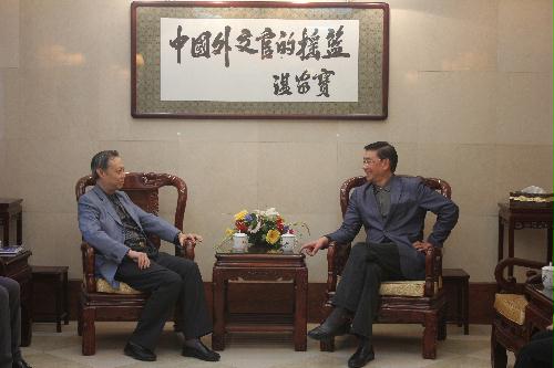 10月17日下午2:00,全国人大办公厅外事局李小彬局长和汤涧处长来我院做2014年国家公务员招录宣传介绍会,赵进军院长在138接待室会见了两位来宾。会谈中,李小彬局长向赵院长详细地介绍了2014年的招录计划,并对外交学院毕业生的综合素质给予了高度肯定,表示非常重视外交学院毕业生生源。赵院长对李局长及汤处长的到来表示热烈的欢迎,并对他们给学院毕业生带来就业岗位表示感谢。此外,他们还就合格的外交外事干部应具备哪些能力素质进行了探讨。随后,李局长和汤处长前往419报告厅向毕业生详细介绍招录情况和工作情况,并回答毕业生的提问。(外交学院学生处)