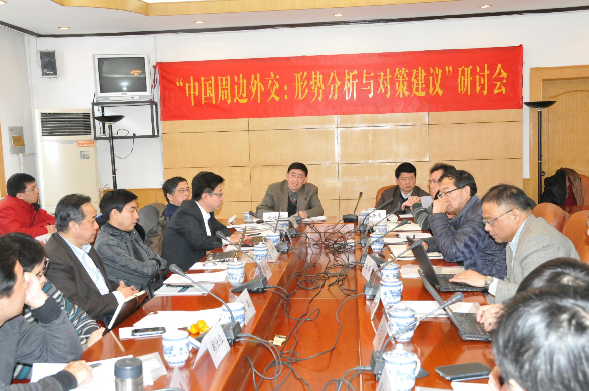 2013年以来,中国周边外交形势继续发生深刻变化,我周边外交仍面临较为复杂的局面。为更好地总结和评估今年周边外交的总体形势,向外交部提交具有权威性和前瞻性的年度政策建议报告,外交学院东亚研究中心于2013年11月29日下午召开“中国周边外交:形势分析与对策建议”专题研讨会,邀请来自外交部、商务部、北京大学、清华大学、中国社会科学院、现代国际关系研究院和外交学院的30余名知名专家和代表参会,共同研讨今年周边外交的总体形势、热点问题,并提出对策建议。外交学院院长赵进军、党委书记秦亚青、副院长郑启荣、江瑞平和院长助理王帆出席会议。