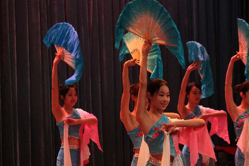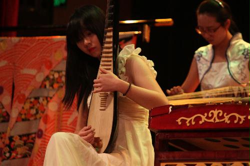 作为东道主,我校艺术团的首先奉上由民族乐器古筝、扬琴、琵琶、二胡演奏的民乐《地上的星》和富含中国古典元素的舞蹈《风酥雨忆》。