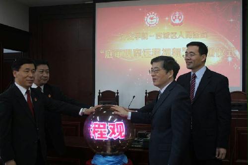 2014年12月2日,外交学院-西城区人民法院“庭审观摩远程视频”开通仪式在我院沙河校区模拟法庭隆重举行,北京市西城区人民法院党组书记、院长蔡慧永、北京市西城区人民法院副院长钱俊清、外交学院副院长郑启荣、外交学院院长助理高飞、我院国际法系系主任许军珂、国际法系党总支书记王胜乾等双方单位领导,以及我院国际法系老师和学生、部分新闻媒体的代表共约90人出席了开通仪式。
