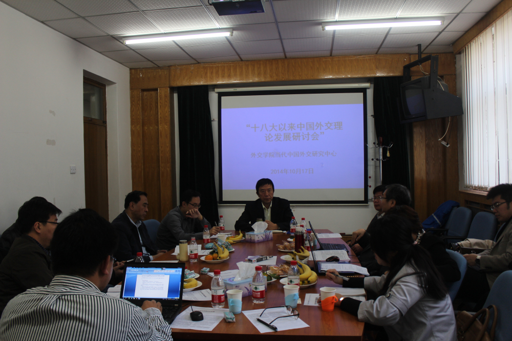十八大胜利召开以来在以习近平同志为总书记的新领导集体带领下,中国在外交理论和实践领域有了新的发展。为总结创新成果、更好地推动我院外交学学科建设,外交学院当代中国外交研究中心于2014年10月17日在展览路校区主楼141会议室举办了“十八大以来中国外交理论发展研讨会”。来自外交部、中联部、清华大学、国际关系学院、现代国际问题研究院、四川外国语大学、当代世界杂志社等院校、单位以及我院的专家学者20余人参加了会议。