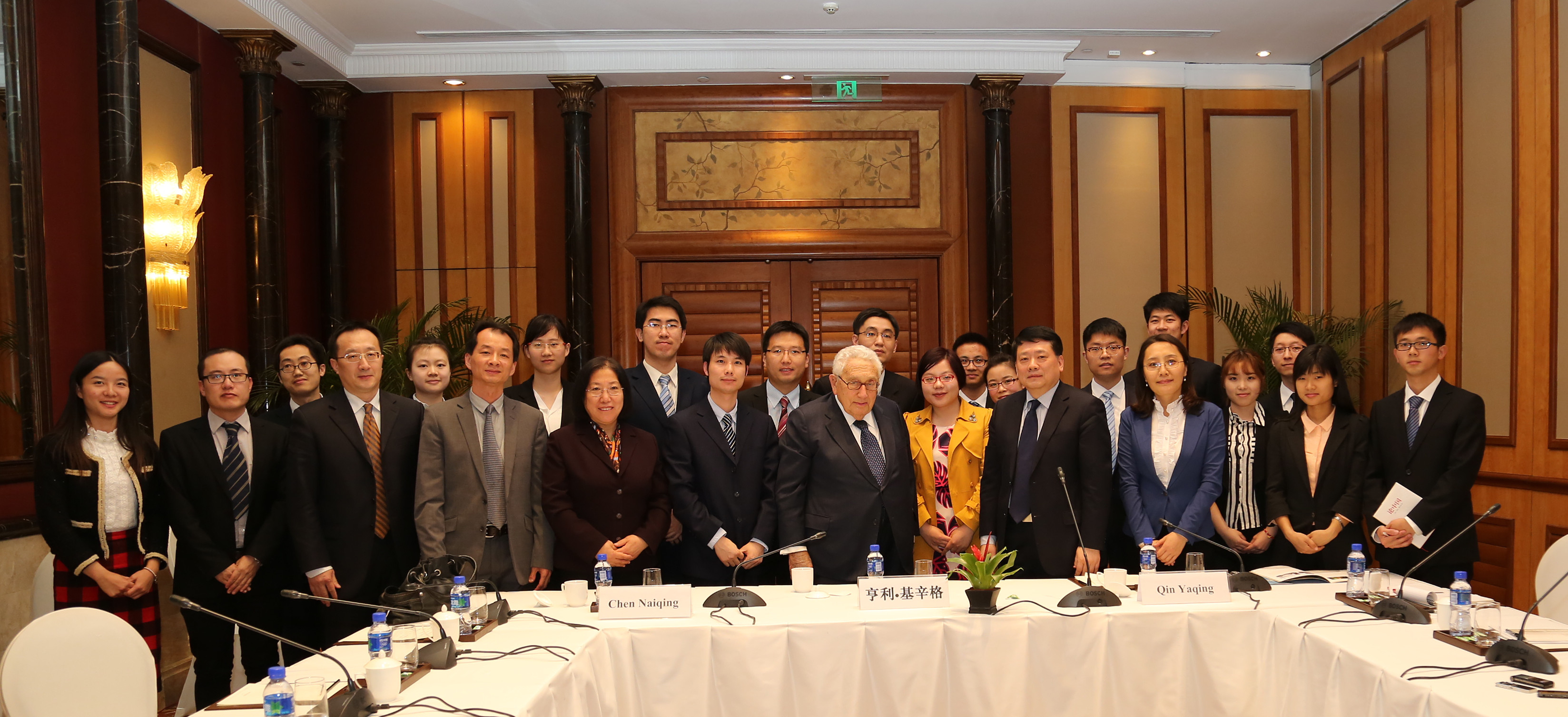 2015年3月20日下午,应中国人民外交学会邀请,我院院长秦亚青教授、院长助理孙吉胜教授和20名我院师生代表与美国前国务卿亨利·基辛格博士座谈。本次座谈由秦院长主持,外交学会副会长陈乃清大使出席了座谈会。