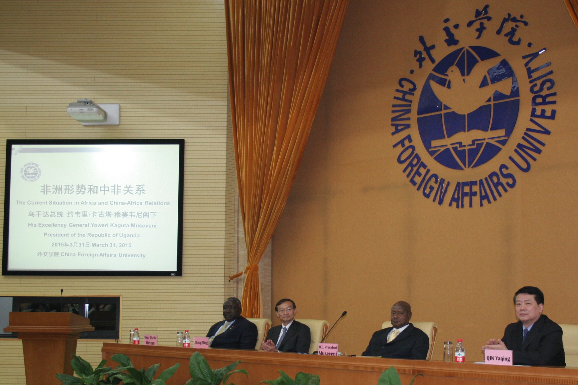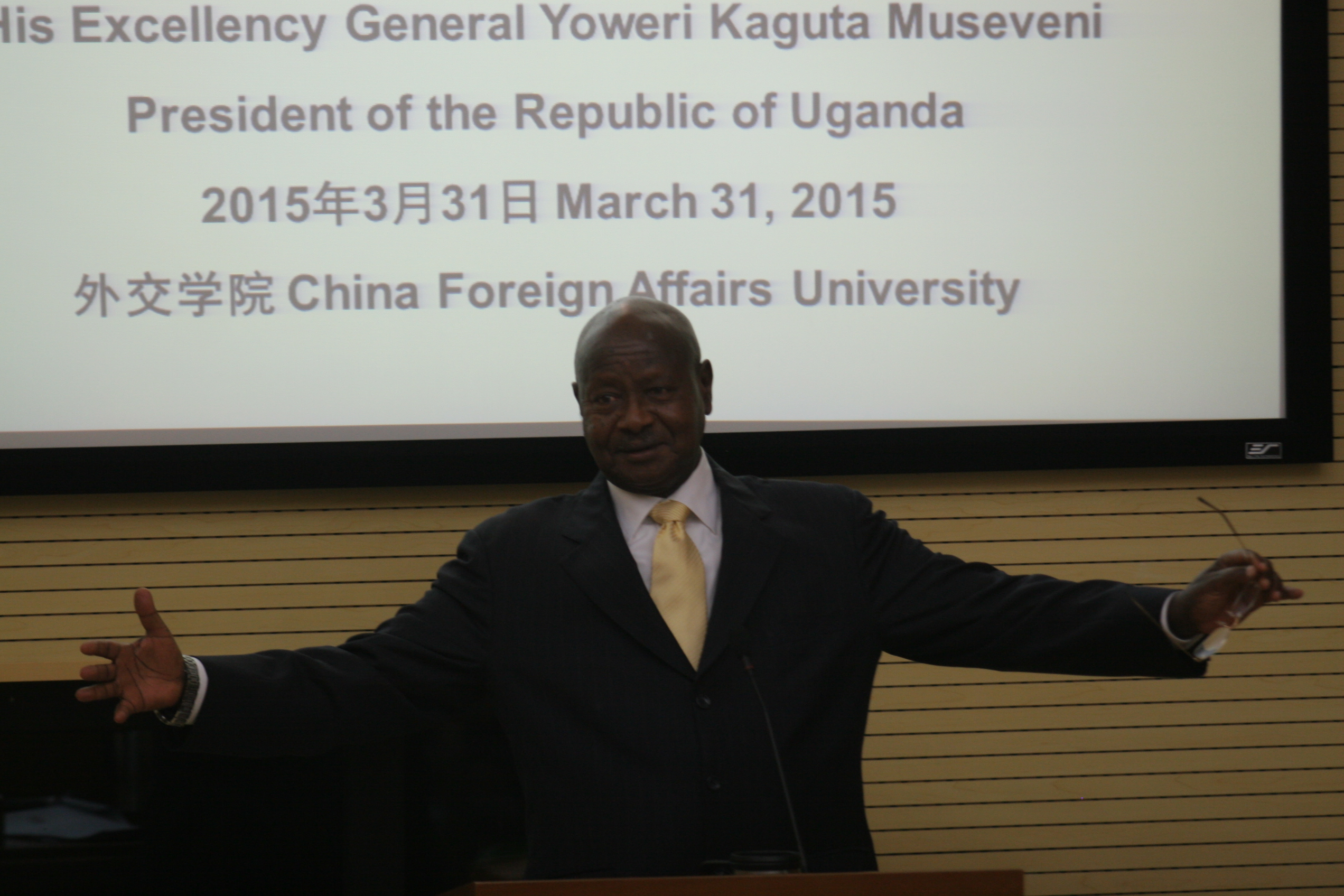2015年3月31日上午,在中国外交部副部长张明的陪同下,乌干达共和国总统约韦里•卡塔古•穆塞韦尼率团到访我院沙河新校区,并发表题为“非洲形势和中非关系”的演讲。