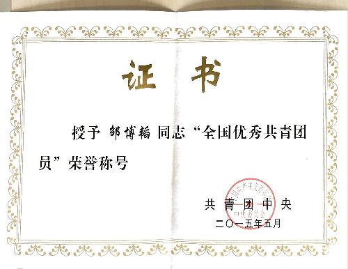 邵博韬,现任院团委学生副书记,国际经济学院2012级学生,经学校和团市委推选,团中央综合考察,获得共青团中央授予的2014年度“全国优秀共青团员”称号,是北京地区高校系统唯一一名获此殊荣的青年团员。