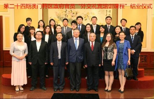第二十四期澳门特区政府官员“外交礼宾培训课程”已经顺利结束,我们将认真总结、分析该班的经验和不足,加强与澳门特区政府行政公职局和任课老师之间的协调与沟通,进一步完善对澳门公务员的培训工作。