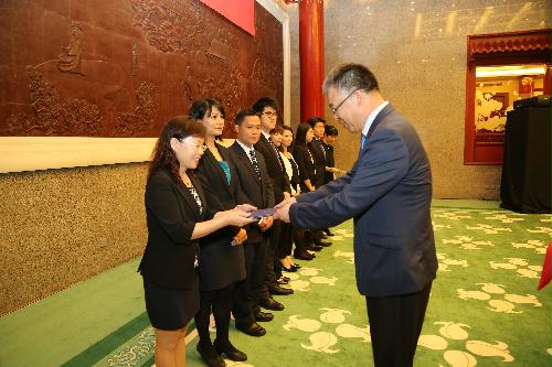 受澳门特区政府行政公职局委托,国际交流中心于2015年6月6日至6月13日举办了第二十四期澳门特区政府官员“外交礼宾培训课程”,本班学员共18名,来自特区政府下属各职能部门,负责外事公关、礼宾接待工作。培训班得到了学院、外交部港澳台司等单位的重视与支持。我院徐赤宇副院长出席培训班结业仪式,并为学员颁发结业证书;港澳台司马占武副司长亲临活动,祝贺学员结业。