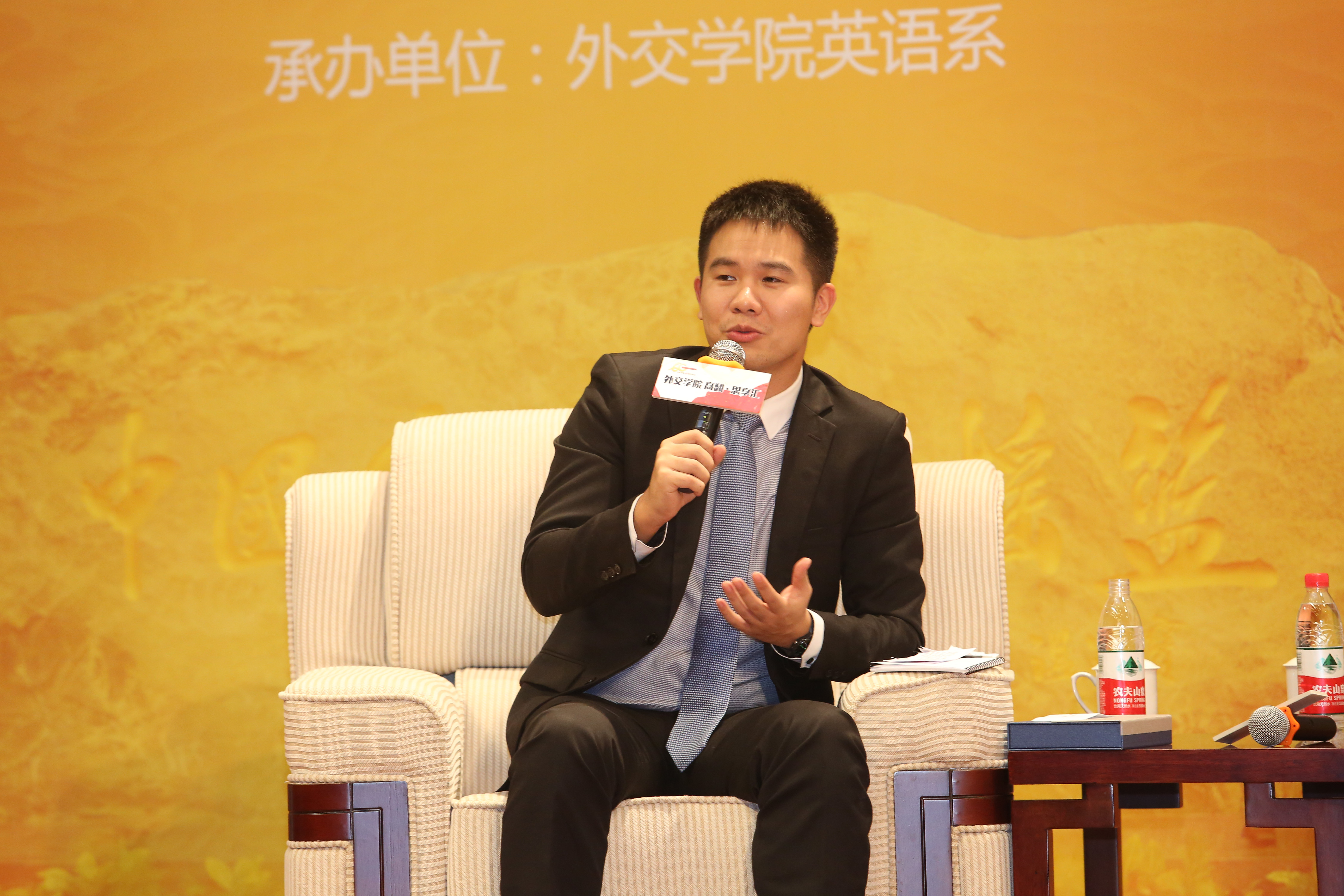 “外交学院高翻·思享汇”的上半场活动由院长助理孙吉胜教授主持。孙院助强调了本次活动的深远意义和重要影响,并对校友嘉宾一一进行了介绍。此次活动邀请了来自外交部、中联部、新华社、中石油等活跃在翻译一线的各路顶尖高翻校友,与我院及部分兄弟院校师生分享他们的翻译学习经验和工作上的心得体会。应邀出席活动的校友嘉宾分别是:外交部翻译司政工参赞戴庆利(英语系1996届毕业生)、外交部翻译司西葡语处处长张璐(国际法系2000届毕业生)、中国石油天然气集团公司国际部联络处副处长段雅睿(英语系2001届毕业生)、新华通讯社国内部重大报道策划中心首席记者兼翻译熊争艳(英语系2004届毕业生)、外交部翻译司英文处随员田乙杉(英语系2008届毕业生)和中共中央对外联络部党群外事协调局助理秘书兼翻译崔立(英语系2012届毕业生)。