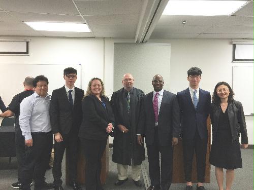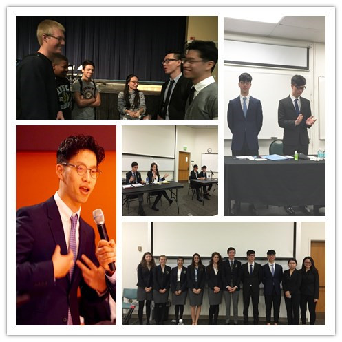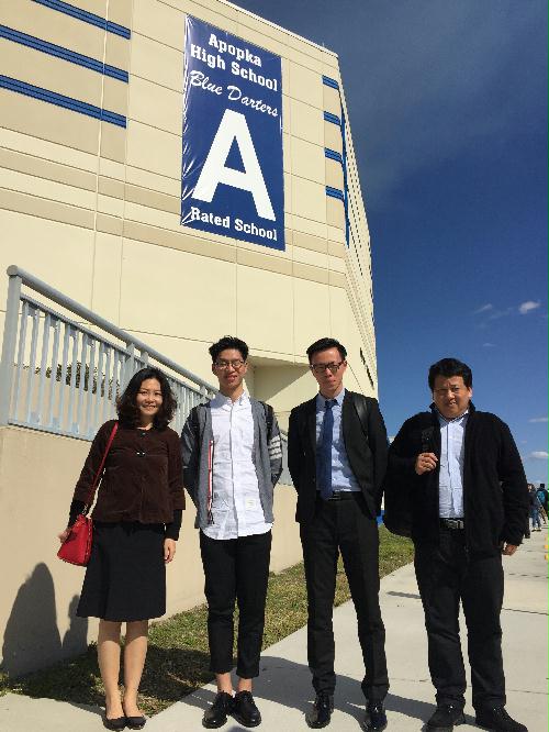 中美两国辩手还访问了奥兰多市郊的Apopka中学, 从上午九点一直到下午三点,辩手们连续进行了七场表演赛,挑战了包括“本院认为坎耶·法斯特会成为一位出色的美国总统。”(This house believes that Kanye West can become a good US President)在内的新颖辩题。辩手们宏辞论道,以辩会友,台下掌声雷动,欢呼不断。我院辩手马知遥的风趣幽默深深地打动了台下的观众,Apopka中学的学生们不约而同地呼喊他的名字;而另一位辩手李纪为凭借沉着的发挥,赢得了在座学生和老师赞许的目光与热烈的掌声。最终表演赛在欢乐中落下帷幕。