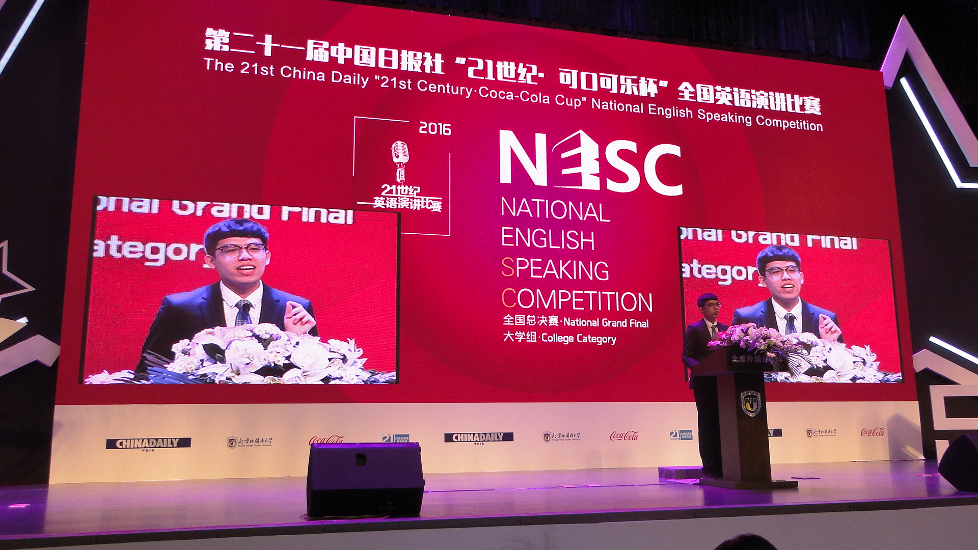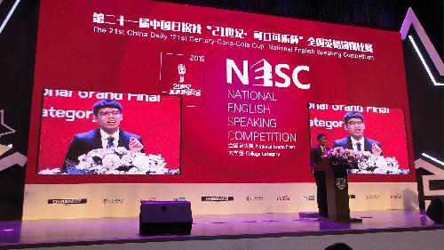 中国日报社“21世纪·可口可乐杯”全国英语演讲比赛是国内最权威、影响力最广、比赛规模最大的英语演讲比赛。经互联网选拔赛、校园选拔赛、地区选拔赛的层层选拔,来自全国20个赛区以及港、澳、台等地区和泰国、韩国等国家的69名优秀选手参加了此次总决赛。