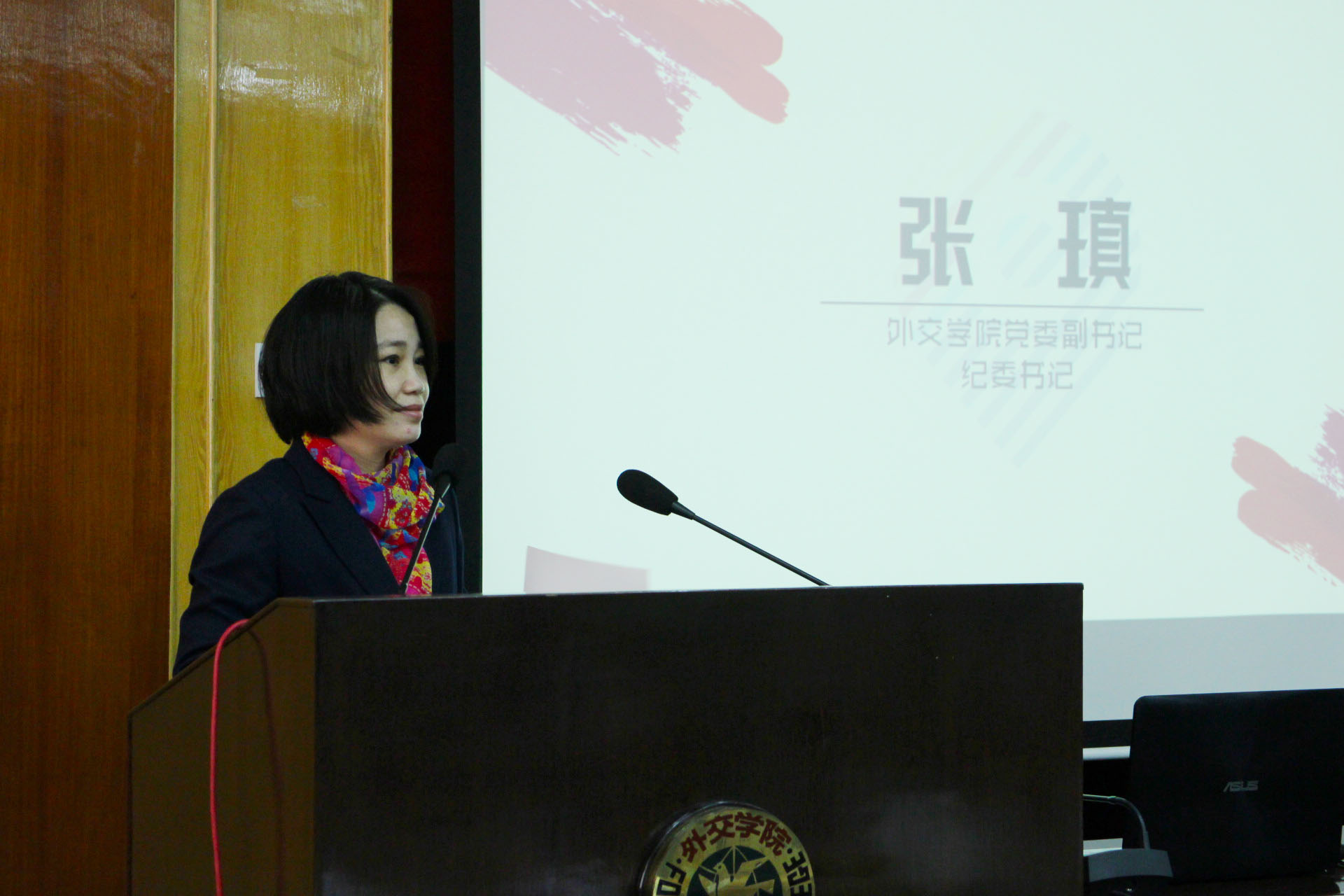 启动仪式开始,外交学院党委副书记、纪委书记张瑱代表主办方外交学院致辞,表示全国大学生模拟政协提案大赛作为外交学院品牌学生活动,为大学生们实现参政议政的愿望提供了模拟平台,创新性地激发大学生的社会责任感与家国情怀,从而达到理论联系实际、校园联系社会、个人联系国家、问题联系发展的目的。希望通过外交学院与九三学社的共同努力,推动提案大赛走向机制化。希望有越来越多的青年学子在未来成为认识中国、建议中国、服务中国的重要人才,为实现中华民族的伟大复兴和美丽的“中国梦”而不断努力、共同奋斗。