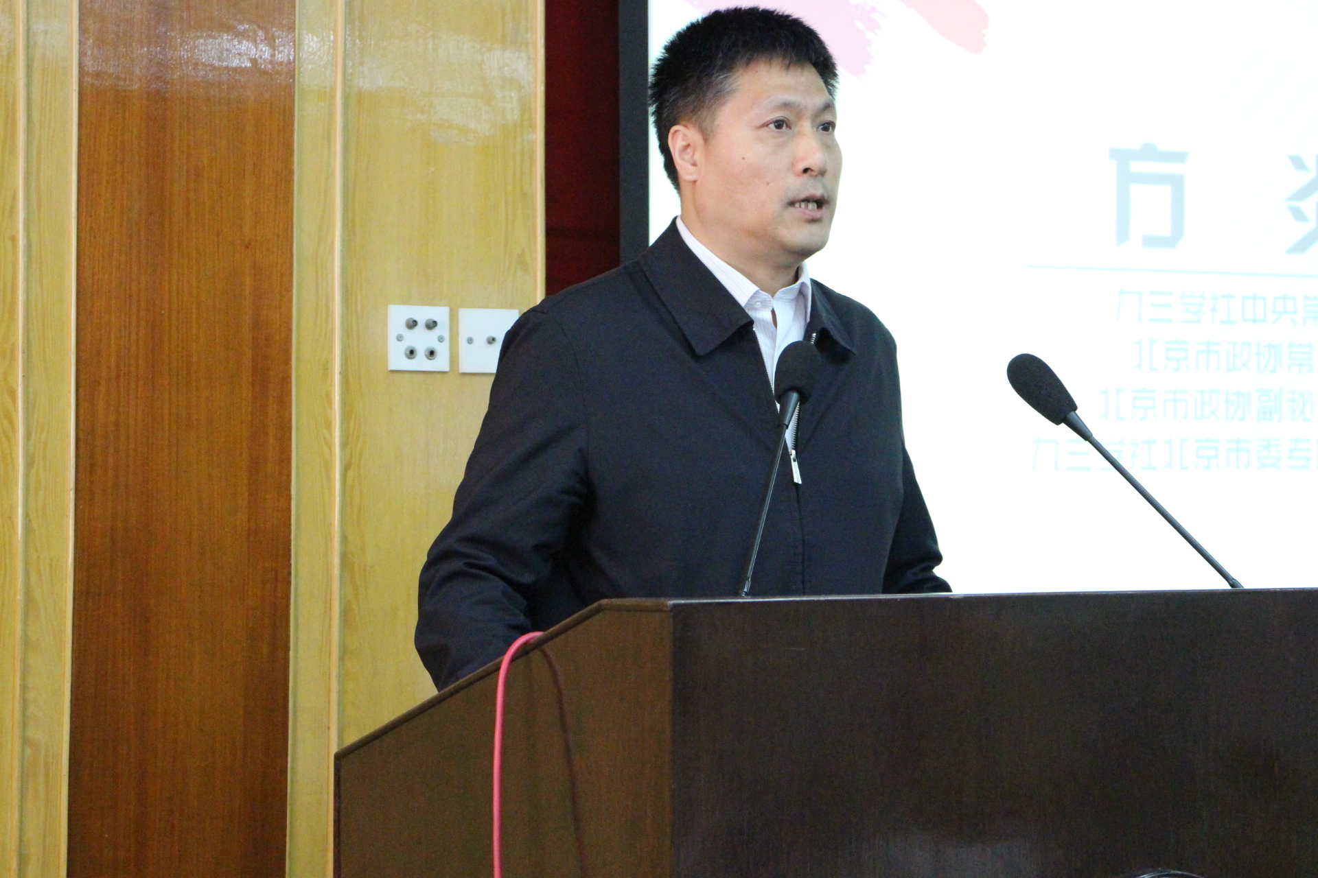 九三学社中央常委、北京市政协常委、北京市政协副秘书长、九三学社北京市委专职副主委方炎代表九三学社致辞,指出九三学社一直支持提案大赛的举办,推荐各领域的专家作为导师为队员们提供指导,并积极对优秀作品进行修改,将成果转化为真正的政协提案。提案大赛使同学们将知识从书本带向社会,积极发现体制政策不完善的地方,提出问题并调研交流,提高了同学们对于相关知识的学习热情与效率。在全球视野下,引导青年人参与政治是各国的重要课题,提案大赛正是为青年人提供了一个政治参与的渠道。第三届提案大赛的四份模拟提案,已经经过政协委员们的修改变为了真正的提案。希望通过外交学院、九三学社、北京团市委等相关单位的共同努力,推动提案大赛的发展。