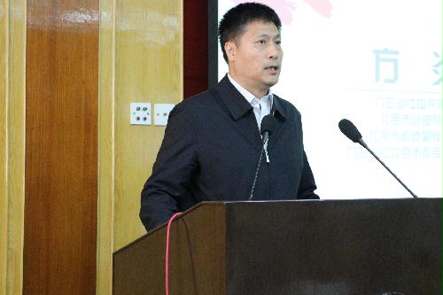 九三学社中央社会建设委员会委员、北京中视广信科技有限公司总经理徐建新代表提案大赛独家赞助方中视广信科技有限公司致辞,表示模拟提案大赛是一个有创新、有实践、有正能量的赛事,希望参加提案大赛的选手们能够为解决社会上存在的问题建言献策。