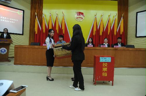 下午,在教学楼的六个分会场,各代表团分团会议如期举行,讨论了两个工作报告、委员选举办法和候选人名单等。一个多小时后,第二次全体代表会议召开,审议通过了一系列选举文件,并投票选出了外交学院第十一届团委委员、学生委员。