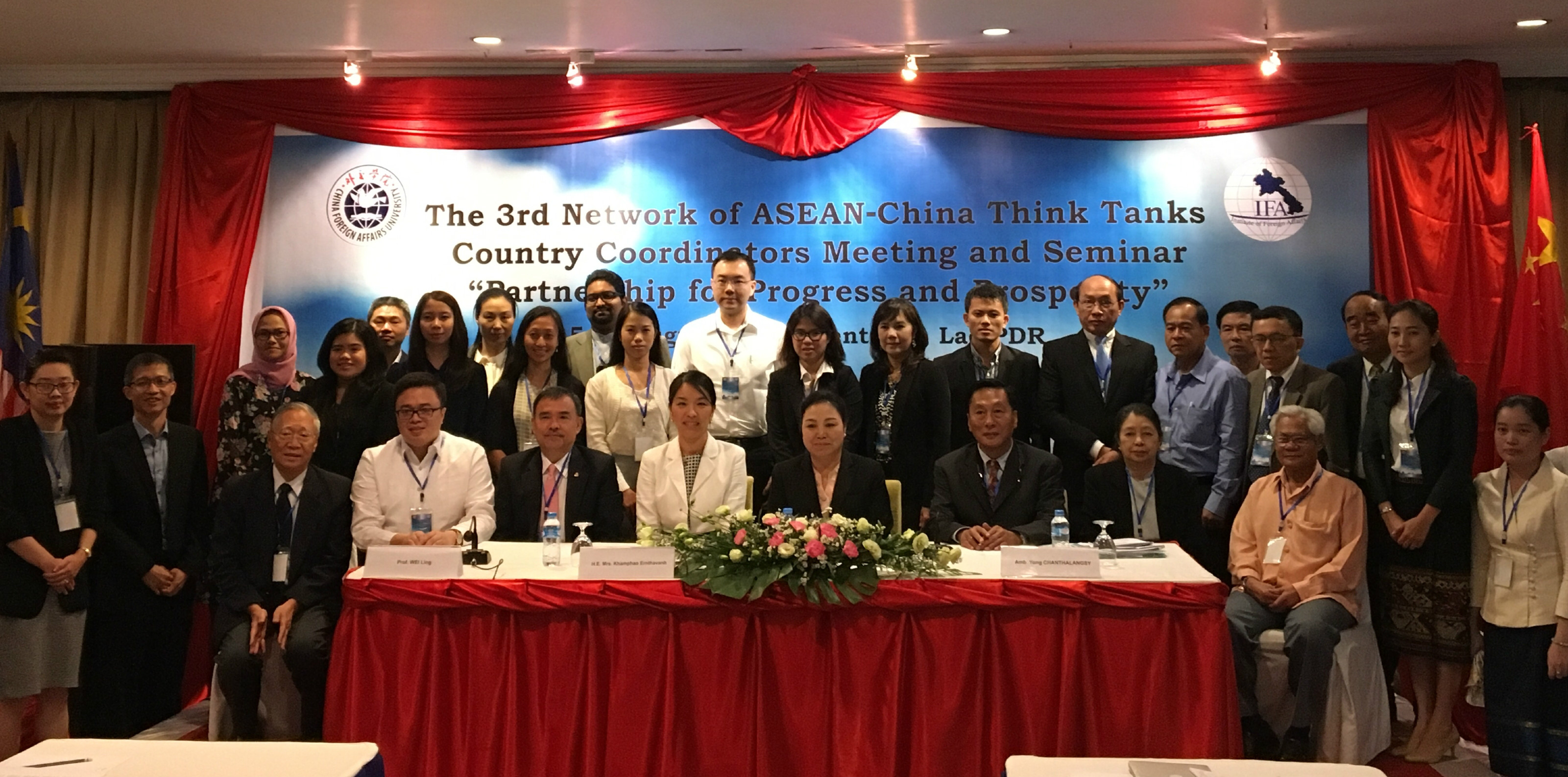 2016年8月14—16日,中国—东盟思想库网络(NACT)第三次国家协调员会议暨“中国—东盟构建进步与繁荣的伙伴关系”研讨会在老挝万象举行,本次会议由老挝外交学院(“NACT老挝”)与中国外交学院亚洲研究所(“NACT中国”)共同主办。