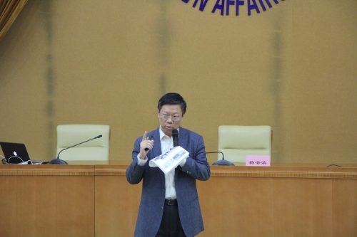 讲座中,杨老师以世界地图为例,指出世界各国所出版的地图都以本国为中心,体现出了各国不同的价值观。由此他勉励我们心中始终要怀揣一幅中国地图,不管在何地工作,都要从世界中心出发,传播中国声音与诉求,不忘初心。接着杨老师讲述了自己利用莫奈画作回应外方嘉宾质疑中国雾霾影响、引用世界名曲呼吁中外友好交往等外事案例,强调了综合素质对一名外交外事人才的重要性。杨老师鼓励同学们汲取多领域知识,使自己更加从容淡定,在对外交往中绽放中国人的光芒。