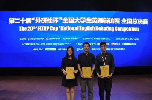 2017年5月18至25日,第二十届“外研社杯”大学生英语辩论赛全国总决赛在我院沙河校区举行。本次大赛由团中央学校部、全国学联秘书处和北京外国语大学联合主办,由外语教学与研究出版社和我院共同承办。来自全国各地的122支队伍参加了比赛。