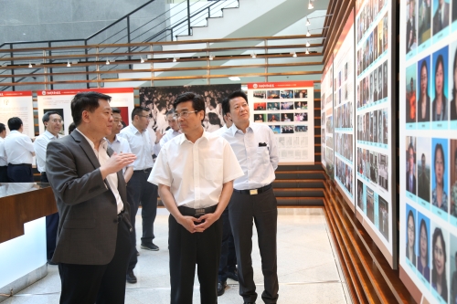 秦亚青院长、齐大愚书记首先向林克庆同志一行介绍了校园内的主体建筑。随后,林克庆同志一行来到图书馆,参观了我院校史展。秦亚青院长向调研团展示了校区规划图,介绍了学院的建设情况。