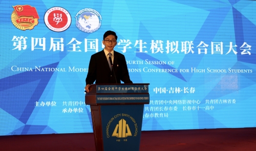 8月7日至10日,第四届全国中学生模拟联合国大会在长春市十一高中成功举办。本次大会由团中央学校部、全国学联秘书处、团中央网络影视中心、吉林团省委主办,外交学院团委、长春团市委、长春市十一高中承办,长春市教育局支持。以“全球视野与青年责任”为主题,吸引了来自全国41所高中的350余名优秀学子参加。大会期间,团中央书记处书记傅振邦到会观摩并慰问师生代表。