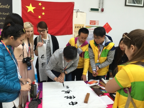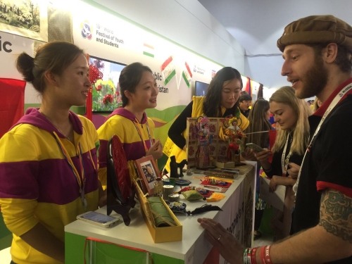活动期间我校学生代表参与了中国国家展台与友谊集市开展首日、次日与最后一日的志愿服务工作。为了更好地向世界展示中国形象,出发前我校学生代表就为本次活动进行了大量前期准备工作,为中方展台和友谊集市准备了包括寓意和平友好的原创诗词及书法作品在内的具有中国特色的纪念品及工艺品。我校学生还作为中方青年代表受邀接受央视俄语频道采访,介绍临行前的准备情况。