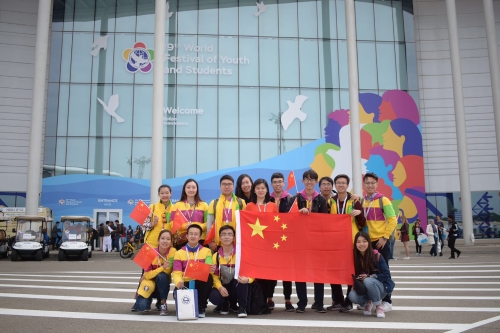 2017-11-06展中国青年风采 献礼十九大——外交学子参与第十九届世界青年学生联欢节活动 10月14日至23日,第十九届世界青年学生联欢节在俄罗斯索契举行。团中央国际联络部组派中国青年代表团一行200余人参与本次联欢节活动。活动期间,作为人数最多、参与中国展位志愿服务时间最长的高校代表团之一,外交学院14名学生以坚定的政治立场、良好的精神风貌,在世界舞台上展示了中国高校青年的风采,以实际行动庆贺党的十九大胜利召开!外交学子在第19届世界青年联欢节主会场前合影 一、牢记身份,展示中国青年良好风貌活动期间我校学生代表参与了中国国家展台与友谊集市开展首日、次日与最后一日的志愿服务工作。为了更好地向世界展示中国形象,出发前我校学生代表就为本次活动进行了大量前期准备工作,为中方展台和友谊集市准备了包括寓意和平友好的原创诗词及书法作品在内的具有中国特色的纪念品及工艺品。我校学生还作为中方青年代表受邀接受央视俄语频道采访,介绍临行前的准备情况。我校学生刘迪一在世界青年联欢节展台上为俄罗斯朋友书写“中俄友谊长青”在世界青年联欢节活动中,国际经济学院刘迪一同学在中方友谊集市现场进行书法展示并与多位外国青年进行互动,向世界展示了中国青年在学习与传承优良历史文化方面的责任担当与开放包容的儒雅风范。英语系大三唐杰同学为中国代表团代表的主题演讲担任英语翻译,圆满完成了口译交传工作,在世界舞台上展现了外交学子风采。唐杰同学为中国代表团代表的主题演讲担任英语翻译当地时间15日晚,共青团中央书记处书记傅振邦在开幕式结束后来到位于索契奥林匹克公园主媒体中心的中国展台,亲切慰问在联欢节首日坚守服务岗位的外院学子并受到同学们的热烈欢迎。傅振邦书记对大家能够作为中国青年的代表来到索契参加此次联欢节活动表示祝贺,希望大家能够珍惜机会、克服困难并鼓励大家在这样一个世界性国际交往的舞台上展现中国青年的风采。团中央书记处书记傅振邦与来自外交学院的青年代表在中方展台合影留念二、心向祖国,高举旗帜紧跟党走 本次联欢节活动适逢十九大召开之际,我校学生代表虽与祖国相隔万里,但仍不忘初心,时刻紧跟党走,认真组织学习十九大报告。我校团委副书记程子贤在观看完十九大开幕式后激动地说:“在详细阐述新时代中国特色社会主义思想时,习总书记指出‘明确中国特色大国外交要推动构建新型国际关系,推动构建人类命运共同体。’外交学院作为外交部唯一的直属院校和双一流学科大学,在每一个五星红旗升起的地方,都有外交学院的学子在为大国外交贡献自己的力量,作为外院学子的一员,我感到无比骄傲。”参加世界青年联欢节的师生在俄罗斯索契集中观看十九大开幕式并交流体会在索契时间10月18日当天下午,中国代表团在驻地组织召开十九大精神学习会,我校英语系程周浩同学作为党员代表发言时表示,“我们作为外交学院的学子,秉承周总理对我们的殷切嘱托,‘站稳立场、掌握政策、熟悉业务、严守纪律’,我们牢记这16字校训,为新时代中国特色大国外交贡献出自己的力量。贡献青春力量,服务大国外交,在接下来新的奋斗中向世界展现中国的风采。”程周浩作为第五分团代表在党员学习会上作发言三、积极交流,立足实效传递中国声音 今年的世界青年联欢节在俄罗斯多个城市举办,邀请世界各国共2万多名青年参加。在这样一个国际性多边活动中,外院学子同各国青年广泛交流,向世界传递中国“正能量”。在短短十天的行程里,同学们依据主办方安排,参加了多场研讨会、国际交流会以及其他体育竞技和文化交流活动。他们同世界各国青年一道,感受前沿科技,畅想第四次产业革命;分享各国优秀文化,体验互动项目,在思维碰撞中向世界发出中国声音,并与各国青年结下深刻友谊,成为了展示中国风度的一张亮丽名片。外交学子在中国区展台向外国友人介绍中国传统手工艺品