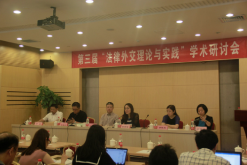 2017-06-232017年6月17日,由外交学院国际法系(国际法研究所)、法律外交研究中心主办的第三届“法律外交理论与实践”学术研讨会在北京市银龙苑宾馆举行,此次会议主题为“变动中的国际秩序与国际法”。来自外交部、最高人民法院、国务院法制办、北京市律师协会等部门与来自北京大学、中国人民大学、中国政法大学、吉林大学、武汉大学、南京大学、厦门大学、对外经济贸易大学、中南财经政法大学、辽宁大学、上海交通大学、北京外国语大学、澳门大学等京内外多所高校、中国社科院国际法研究所等研究机构、国际法促进中心等社会机构的近百位专家学者参加了研讨会。 研讨会开幕式由我院国际法系主任许军珂教授主持,我院副院长孙吉胜教授致欢迎辞。孙教授对与会专家学者表示衷心感谢及热烈欢迎,同时介绍了我院的办学特色以及法律外交交叉学科的建设,最后,孙教授强调,大国外交必须重视国际法,作为发展中的大国,中国既是国际法治的倡导者,也是践行者,法律与外交研究相结合是大势所趋。研讨会第二部分为主题报告,由我院国际法系卢松教授主持。外交部条约法律司副司长郭晓梅女士就法律外交的最新发展进行了详细的介绍,强调了涉外法律人才交流机制的建立与运行。外交部领事司副司长陈雄风先生就领事保护的内涵和外延以及最新发展进行了梳理,强调了我国领事保护的多样性,呼吁领事保护规则体系的进一步建立。最高人民法院民四庭副庭长刘敬东博士介绍了法院在公约解释和运用方面的重要作用,强调中国司法应提高在国际社会的话语权。17日下午,研讨会进入分组讨论环节,一共分为四组进行。A组议题为“中国公民和法人海外权益保护问题”;B组围绕国际公法领域的相关问题展开讨论;C组集中讨论“一带一路”建设过程中的相关法律问题;D组回溯及探讨了姚壮、刘文宗两位老教授的国际法学术思想。 在中国深度参与全球治理的大背景下,与会专家就国家领土海洋、领事保护、追逃追赃、“一带一路”司法建设等热点问题展开讨论,以期对中国外交提供更多的指导,为国际法规则的形成、法律新秩序的构建发挥应有的作用。 国际法系
