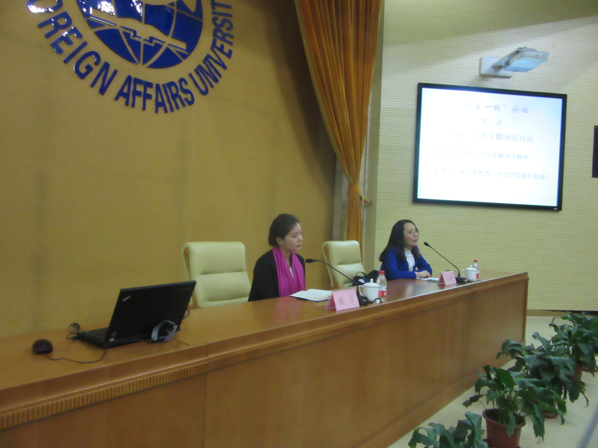 2015-01-092014年12月17日下午,外交学院英语系优秀毕业生、外交部翻译室翻译张京在沙河校区图书馆报告厅主讲“外交一线”论坛第二讲,主题为“与外交翻译面对面”。该论坛由科研处、英语系、北京对外交流与外事管理研究基地联合主办。本次讲座由外交学院院长助理、科研处处长孙吉胜教授主持。全院各系的老师和同学们踊跃参加,报告厅座无虚席。 讲座中,张京结合自身在外交学院的学习、参赛经历,以及入部以来的外交翻译实践,表达了自身对外交翻译工作的热爱,为有志从事外交工作的同学们提供了宝贵的借鉴。 讲座开始后,张京首先表达了对母校外交学院的感恩之情。她认为正是由于母校老师的关爱和同学们的帮助,她才能在英语演讲和辩论比赛中取得骄人的成绩。同时,她也敦促在座的各位同学珍惜大学时光,充分利用外交学院的各种教学资源和实践平台锻炼自己的多方面能力。在提及自身参与演讲和辩论比赛的经历时,她表示参与相关的英语学科竞赛不仅提高了自身的语言能力,更历练了良好的心理素质和缜密的逻辑思维能力,为之后的翻译工作打下了良好的基础。 入部之后,张京先后经历了“魔鬼训练”、出国深造、以及频繁的外交翻译工作,使自身的风范、修养、举止、思想等方面获得了很大的提高。在讲座过程中,张京多次以外交翻译张璐、孙宁为例,讲述了一个优秀的外交译员应具备的各项素质,诸如细致、稳重和扎实等特点。同时,张京也充分肯定了外交学院学生过硬的政治素质和业务水平。 在讲座的提问环节,同学们积极提问。问题涉及如何成为一名合格的译员、如何平衡工作和生活、如何看待汉语学习以及如何应对网络走红等多个方面,张京诚恳耐心地做出了解答。她强调外交工作中外事纪律的重要性,在校期间就应该养成良好的政治觉悟和组织纪律性。她鼓励同学们珍惜大学时光,积极参与各类英语比赛,培养广泛的兴趣爱好。她还指出汉语学习是英语学习的基础,应大量广泛地阅读来培养自身对关键信息的分析能力。在具体外交实践中,更应该扎实投入,做到准确高效地传达信息。 在讲座开始之前,张京与我院部分同学举行了小范围的座谈会。在简单介绍外交部翻译室的基本情况后,张京表示外交部的工作能极大地挖掘潜能,拓宽眼界,希望越来越多的外院学子从事外交外事翻译工作。 张京2003年至2007年就读于外交学院英语系。大学期间,张京先后在第十届“外研社杯”全国英语辩论赛中获得冠军,在第十届“21世纪杯”全国英语演讲比赛中获得亚军。2007年,张京进入外交部翻译室英文处从事口笔译工作至今,多次承担党和国家领导人外事活动口笔译任务,曾被评为外交部“优秀公务员”,并立个人三等功。 此次讲座让同学们近距离地领略到了一名优秀外交翻译的风采,感悟到翻译事业的魅力,对于同学们的翻译学习和今后的就业选择具有重要的指导意义。 科研处、英语系、北京对外交流与外事管理研究基地 2014年12月18日