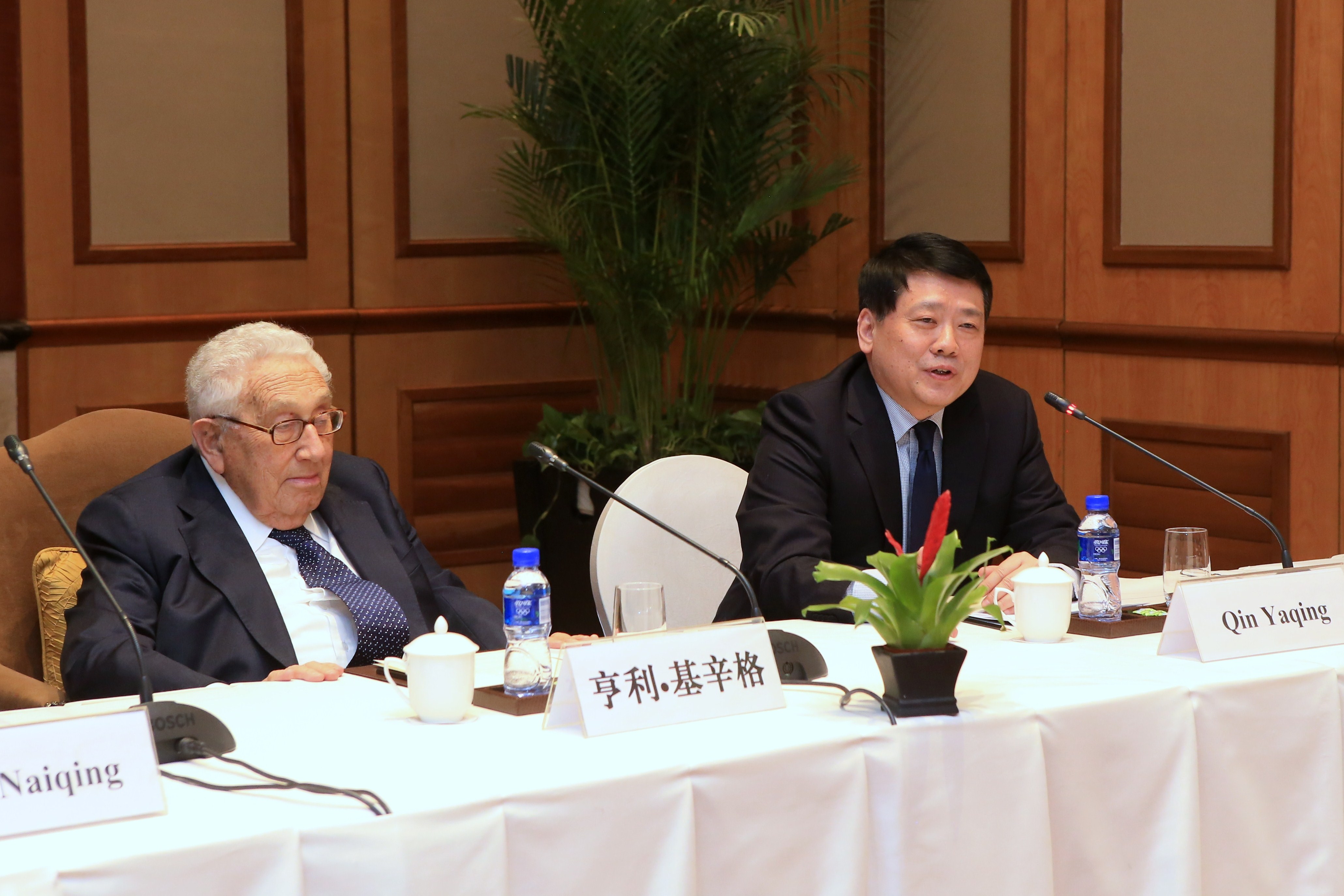 2015年3月20日下午,应中国人民外交学会邀请,我院院长秦亚青教授、院长助理孙吉胜教授和20名我院师生代表与美国前国务卿亨利·基辛格博士座谈。本次座谈由秦院长主持,外交学会副会长陈乃清大使出席了座谈会。 座谈开始前,秦院长、陈大使以及我院师生在会议室门口列队热烈欢迎基辛格博士,他非常热情地与师生们一一握手。入座后,秦院长首先回顾了基辛格博士于1985年和2007年两次访问我院的情形,并介绍了基辛格博士在国际关系理论与实践领域做出的重大贡献。随后,基辛格博士发表演讲,并就中美关系、世界秩序、研究方法等话题与我院师生进行自由交流和座谈。 基辛格博士认为中美应长期保持沟通,及时发现问题,解决问题,并强调只有合作才能共赢。在谈到世界秩序时,基辛格博士认为,世界正面临建立新秩序的机遇,需要以互不干涉内政的具有合法性的主权国家为主体,制定新原则,建立新秩序。基辛格博士还强调了认真研究历史和文化的重要性,历史虽然不会重演,但问题往往会重复出现,而文化是人类社会的核心。 最后,秦院长总结道,基辛格博士广博的知识给人留下了深刻的印象,中国学生都十分钦佩他的学识、视野以及智慧。基辛格博士对中美关系前景持乐观态度,相信通过双方努力,两国关系会朝着更加健康与良好的方向发展。 座谈会结束后,基辛格博士与我院师生合影留念。 基辛格博士是美国著名外交家、国际问题专家,曾任美国总统国家安全事务助理和国务卿,在美国外交政策中发挥过关键作用,并在中美建交中扮演了重要角色,于1973年获得诺贝尔和平奖。