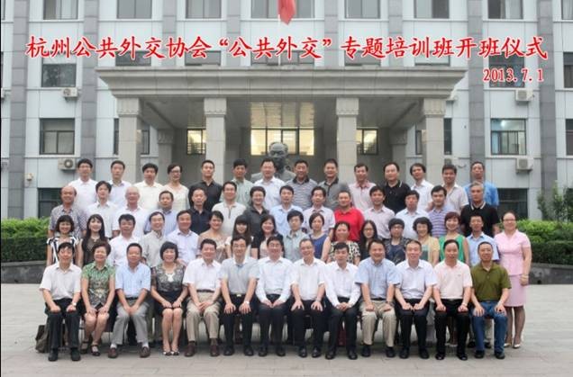 2013-07-10应杭州市政协委托,我院于2013年7月1日至7月5日为其举办了“杭州、青田公共外交协会‘公共外交’专题培训班”,学员共51人。培训班旨在帮助学员丰富公共外交相关知识,并加强杭州、青田政协或两地公共外交协会会员之间的交流和将来的合作。 培训班开班仪式我院和杭州政协对该培训班都非常重视,我院院长赵进军大使、党委书记秦亚青教授、院长助理王帆教授,杭州市政协张鸿建主席等领导出席了开班仪式,赵院长和张主席分别致辞。 结业仪式上培训班学员、杭州市贸促会国际联络部部长李俊和乌克兰中国商会副会长杜宴茹分别致辞。随后,培训班班长、杭州市政协副秘书长,社法委主任胡泽之,和青田县政协副主席钟秋毫共同向学院赠送了纪念品。我院院长助理王帆教授出席仪式,代表学院领导对学员表示祝贺,并为学员颁发了结业证书。 我院自2012年开始了公共外交课程方面的培训,先后为广东省公共外交协会,惠州市公共外交协会举办培训课程,两期培训班的成功举办,使学院在公共外交培训领域获得了较好的声誉。本期针对杭州和青田公共外交协会举办的“公共外交”专题培训班在课程筹备阶段,我院和对方都投入了很大的精力和努力,反复沟通课程内容和后勤安排等各项细节。 培训班的顺利进行得益于学院领导、授课教师以及各个相关部门的大力支持与协助。培训班学员的个人和整体素质都非常高,对项目的顺利完成给予了充分地配合。本期培训班有很多经验都十分珍贵,我们将取其精华,去其糟粕,不断改进,将公共外交培训工作做成品牌,并把这些宝贵经验融会贯通到其他的培训和日常工作,使整体培训工作更上一个新台阶。