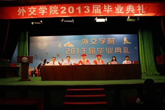 2013-07-082013年7月3日早上八点半,伴随着明媚的阳光和校园中熟悉的夏日青草的味道,我院近600名2013届博士、硕士及本科毕业生齐聚礼堂,参加了外交学院2013届毕业典礼。 赵进军院长,秦亚青书记,郑启荣副院长,朱立群副院长,徐赤宇院长助理,王帆院长助理出席了毕业典礼,各系领导和老师们及外教代表,还有部分学生家长也来到了典礼现场,他们用关切的目光注视着即将离开学校走上各自新的人生旅途的毕业生们,和同学们一起共同见证我院2013届毕业生人生中这一美好和富有意义的时刻。 伴随着雄壮的国歌,毕业典礼拉开了序幕,郑启荣副院长主持典礼。赵进军院长讲话,他的临别寄语意味深长,平实的语言中透着外交学院严谨的作风,以及学校领导对学生们无限的期许,“使命,勤奋,诚信”,六个字掷地有声,振聋发聩,走入每一个毕业生的心中。 研究生部费瑶同学代表毕业生表达了对母校的留恋与感谢,“只有当你离开了,才知道你有多不舍”,朴实的语言抒发了每一个外交学院毕业生的心声。外交学系于凡同学,幽默而不失诚恳的语言中流露出了所有在校生对即将离开学校的师兄师姐的祝福和感谢,引得在场所有人的掌声的欢笑。英语系石毅老师作为教师代表发言,她鼓励同学们做人要诚实守信,学习要持之以恒,生活要健康乐观,让即将离校的同学倍感温暖。 随后,2011至2012年度国家奖学金获得者,2013届北京市优秀毕业生,本科优秀毕业论文获得者代表,以及支援西部和面向基层就业的毕业生分别上台领奖,院领导满怀欣慰地为获奖同学颁发奖状,也许这是他们在校期间获得的最后一个荣誉,但我们相信这绝不是他们在未来人生路上的最后一个荣誉。 典礼最后一项,也是最让大家期待的毕业典礼重头戏——学位证书授予仪式,赵进军院长和秦亚青书记为每一个毕业同学授予毕业证书和学位证书,并且拨动了每个学位帽上的流苏,一个简单的动作,却是每一位毕业生几年来辛勤汗水和努力的总结与褒奖,赵院长和秦书记耐心的进行着授予仪式,近600名毕业生同学也是怀着激动的心情与两位院领导,更是他们尊重的导师亲切交谈、合影,2013届毕业典礼就在这样一种庄重、幸福和激动中落下帷幕。 从明天起,2013届毕业的同学就将离开学校,离开这个他们生活了几年的地方。未来,当他们再返校的时候,就将以校友的身份回来,那个时候,相信他们每一个人都还会记得今天,记得今天这个意义非凡的日子。 学生处 2013-7-4