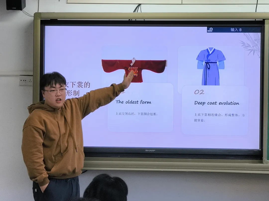 重头戏来了!学生们精心准备的Presentation展示成为本次活动的一大亮点。围绕汉服、唐装、宋代服饰、明代服饰及清代服饰这五大主题,IPP学子以小组为单位,通过生动的讲解、精美的图片和自制的视频,展现了各个朝代服饰的独特魅力及其背后的文化礼仪。无论是汉代的庄重典雅,唐代的开放包容,还是宋代的清新脱俗,明代的华丽繁复,直至清代的精致细腻,每一套服饰都讲述着一个时代的风华绝代。