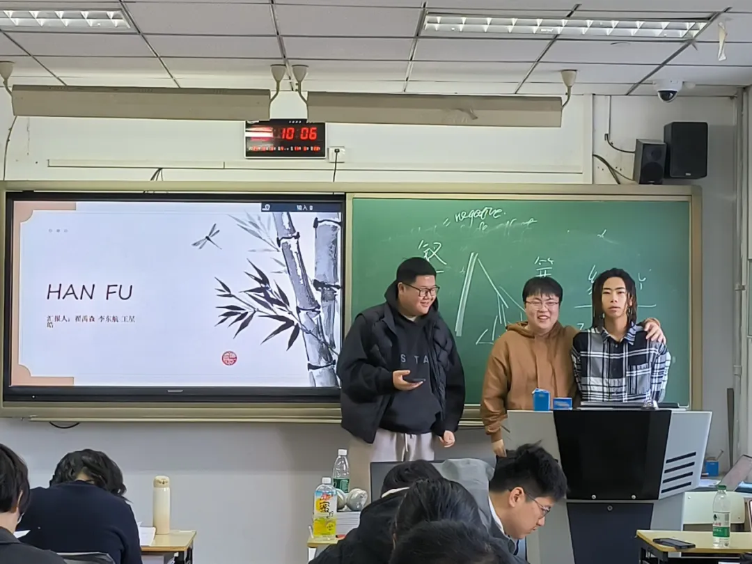 随着最后一组展示的结束,张老师对本次活动进行了总结,高度赞扬了同学们的积极参与和精彩表现。随后,激动人心的颁奖环节拉开帷幕。共2组同学荣获一致好评,获得“卓越演讲者”奖项。他们是宋代小组(吴若烨,张定怡,王瑾伦)和清代小组(孙晓阳,杨承瀚,李舜航)。张老师亲自为他们颁奖,并合影留念,定格下了这一难忘的美好瞬间。
