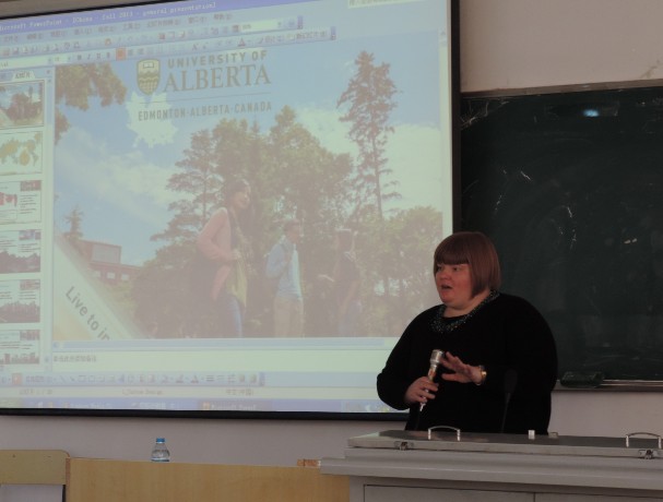 2013年11月29日,阿尔伯达大学Melissa老师专程来到外交学院与IPP学生欢聚一堂,为同学们带来了阿尔伯达大学的相关材料并详细介绍了阿尔伯达大学的情况。会上,Melissa老师与同学们分享了加拿大的概况、阿尔伯达大学的发展及所取得的成就、专业设置、职业规划等一些列问题,学生们都听得非常认真。