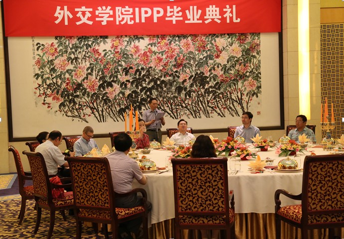 演出结束后,领导、嘉宾、师生们把盏言欢,共同举杯庆贺。纷纷合影留念,相互勉励。晚会结束后,大家依依不舍的离开了金色大厅。外交学院国际教育合作项目(IPP)2014届毕业典礼在优雅的轻音乐里慢慢降下了帷幕。